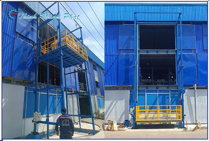Kho xưởng sản xuất và Công nghiệp: Vận chuyển nguyên vật liệu, thành phẩm, bán thành phẩm có tải trọng 1.5 tấn giữa các tầng của dây chuyền sản xuất.