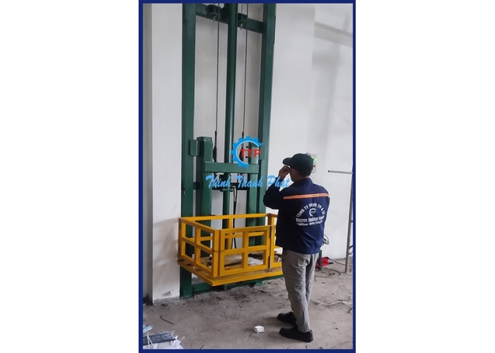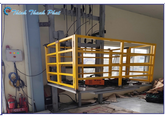 ○ Cơ chế nâng: Sử dụng hệ thống thủy lực (một hoặc hai xi lanh) để đẩy hoặc kéo cabin/sàn nâng thông qua cáp hoặc xích tải. Cơ chế này đảm bảo lực nâng ổn định, độ bền cao và ít gây tiếng ồn hơn so với một số loại tời điện cáp kéo thuần túy.